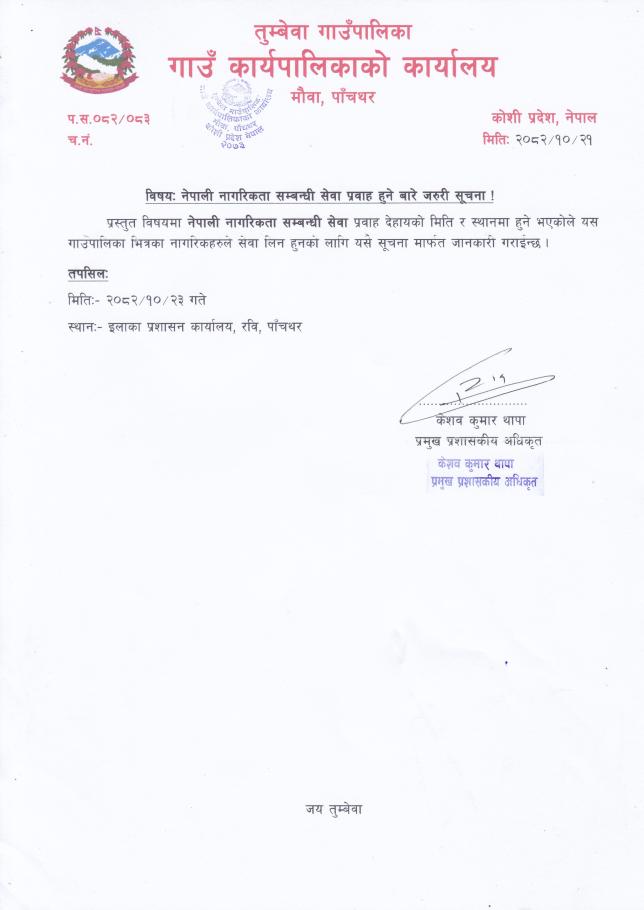 नेपाली नागरिकता सम्बन्धी सेवा प्रवाह हुने बारे जरुरी सूचना ।