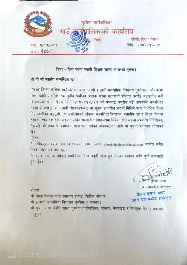 रिक्त पदमा स्थायी शिक्षक सरुवा सम्बन्धी सूचना ।